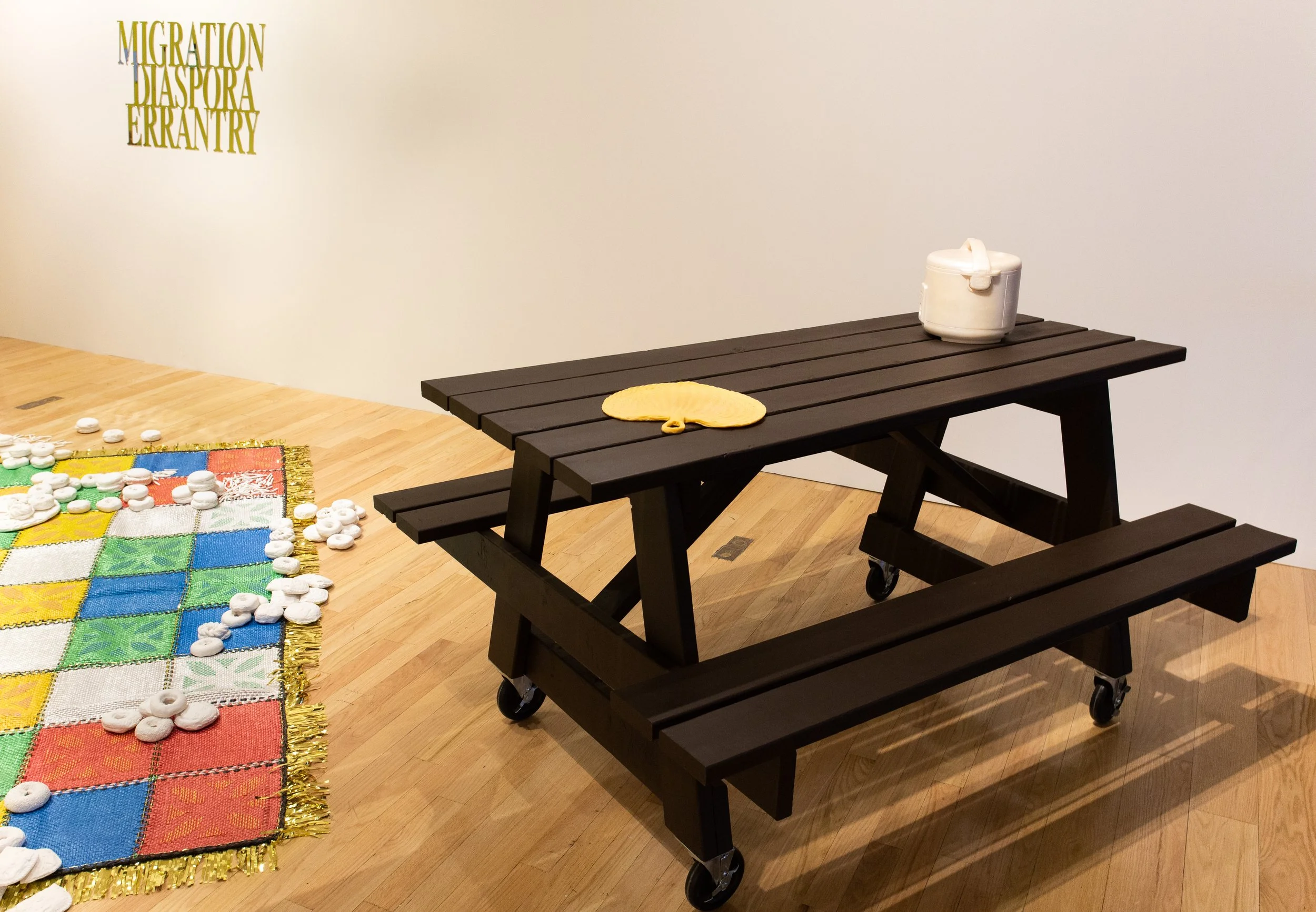 "FAM JAM" (2019). Wood, paint, castor wheels. 72” x 58” x 40”